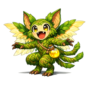 A leaf-wing sprite that gathers lucky sparks with a tiny lantern.