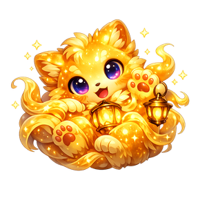 Lumeo was born when a festival lamp's last ember settled into silk tassels in Amber Lantern Hollow. The tiny fae opened its eyes with two golden lanterns already swaying by its paws.
