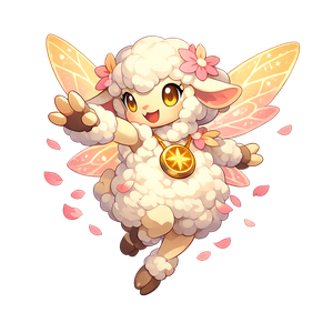 Petalumi was born when the first dawn breeze scattered pollen across the white grasses of Rosedawn Meadow. The petals that settled on her fleece became small wings, and the old sky charm at her chest began to warm whenever luck shifted nearby.