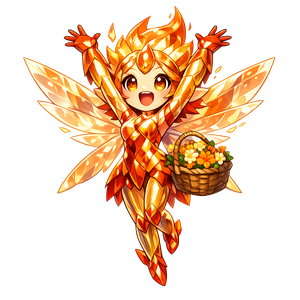 A tiny ember-petal fairy who gathers sun-warm blossoms and shares small blessings.